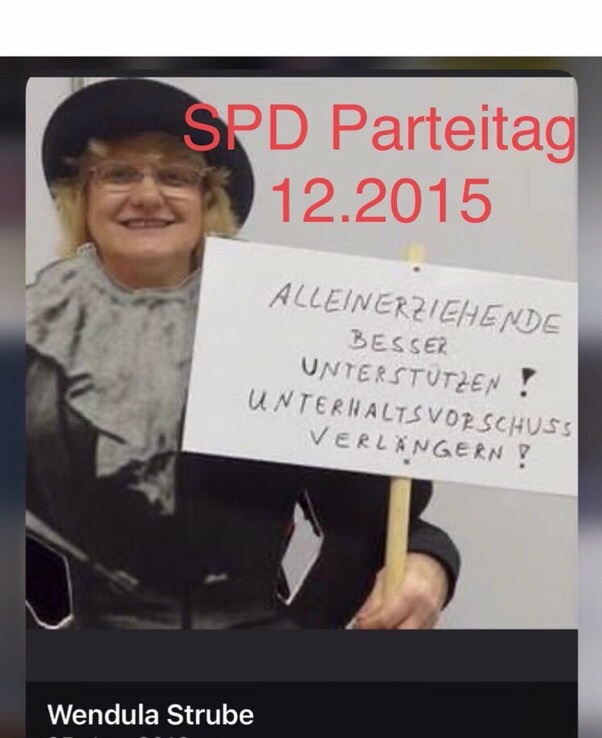 Auf dem Foto seht ihr mich, als ich ganz allein für die Unterhaltsvorschussreform kämpfte. 2017 verwirklichte Manuela Schwesig (SPD) meinen Wunsch nach Gerechtigkeit, der für mich immer noch ein Anfang ist. Der Unterhaltsvorschuss wird jetzt durchgängig bis zum 18. Lebensjahr und nicht mehr nur längstens sechs Jahre, bis zum 12. Lebensjahr gezahlt. Verantwortlich für sein Kind ist jedes Elternteil allerdings bis längstens zum 27. Lebensjahr!